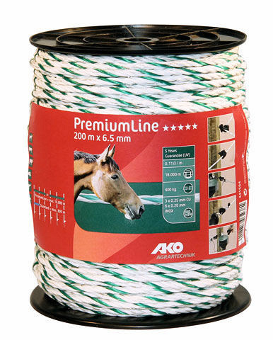 AKO PremiumLine schrikkoord wit/groen 6.5mm - 200m