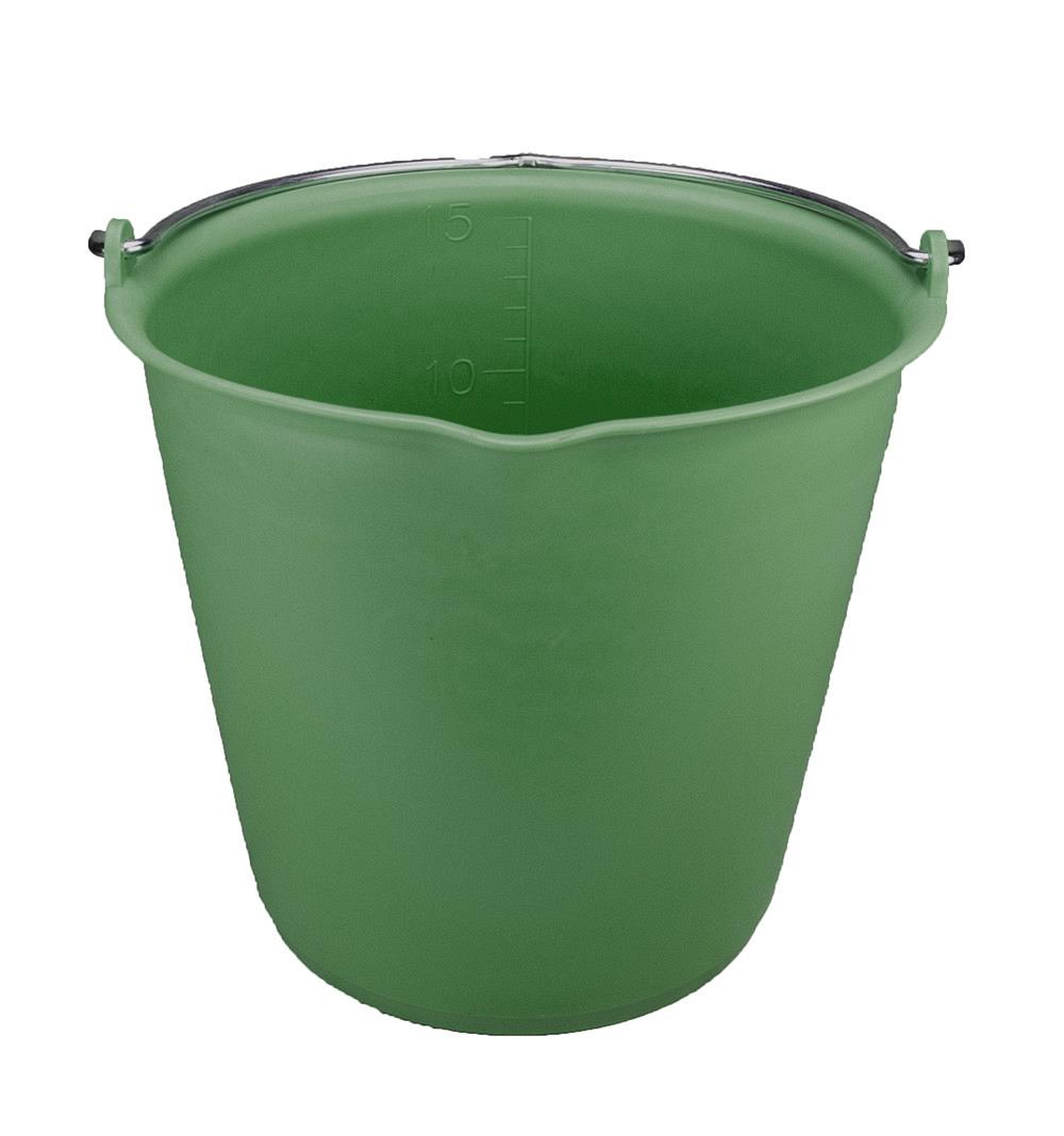 Robuuste, dikwandige emmer met schenktuit en stalen ophanghengsel. Perfect voor paarden- en veehouderij.