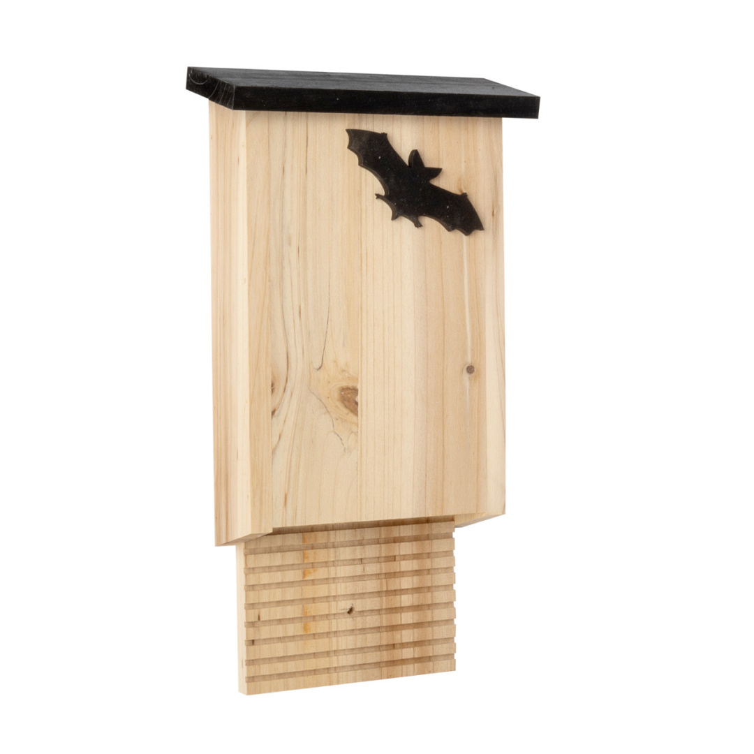Vleermuizen kunnen zelf geen nest maken. Ze zijn afhankelijk van bestaande kieren en gaten om in weg te kruipen. Bied vleermuizen onderdak door deze vleermuizenkast op te hangen.