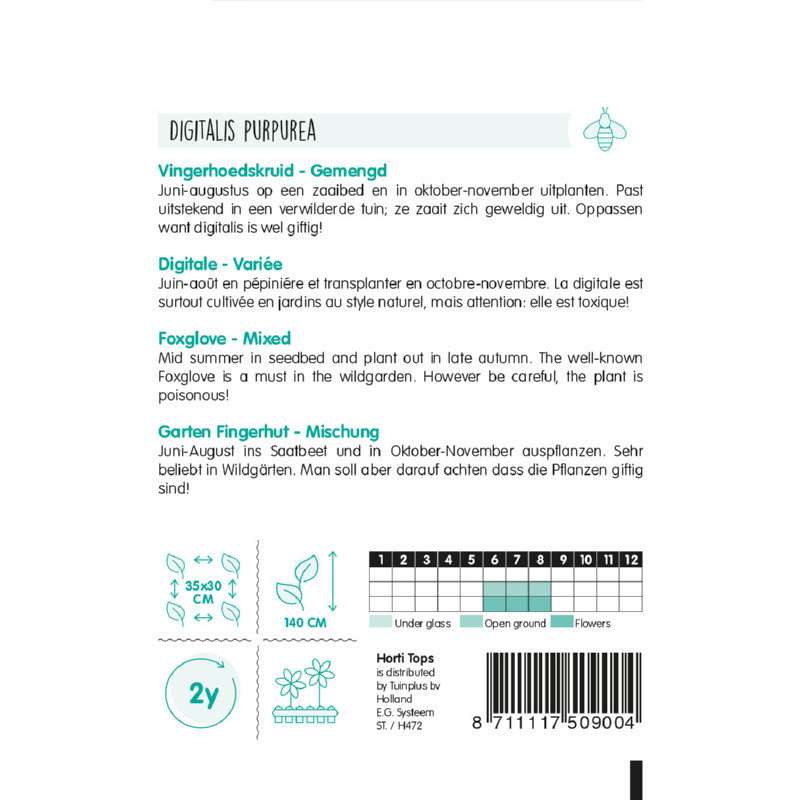 Juni-augustus op een zaaibed en in oktober-november uitplanten. Past uitstekend in een verwilderde tuin; ze zaait zich geweldig uit. Oppassen want digitalis is wel giftig!