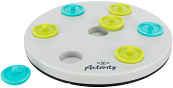 Het bord is gemaakt van kunststof en bevat seven holletjes waar je voer of snoepjes in kunt stoppen. Doordat het konijn het dekseltje optilt, kan het bij zijn beloning. Wordt geleverd met tips en trucs voor een optimale training en is vaatwasserbestendig.