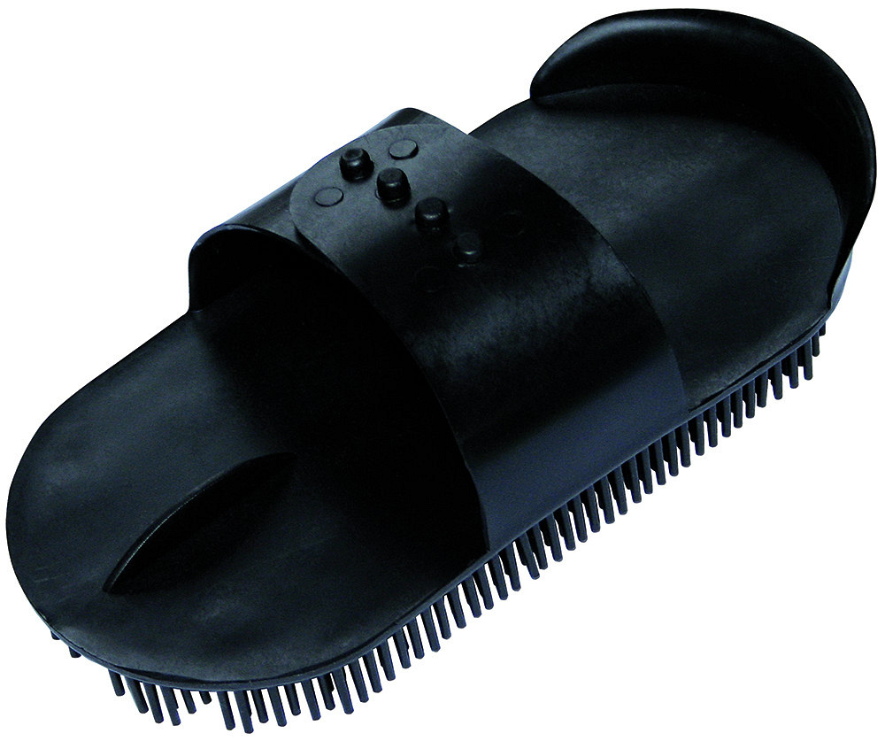 Plastic borstel met verstelbare greep. Om hardnekkig vuil van het paard te verwijderen.