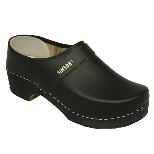 Schoenklompen met houten zool en dichte hiel.